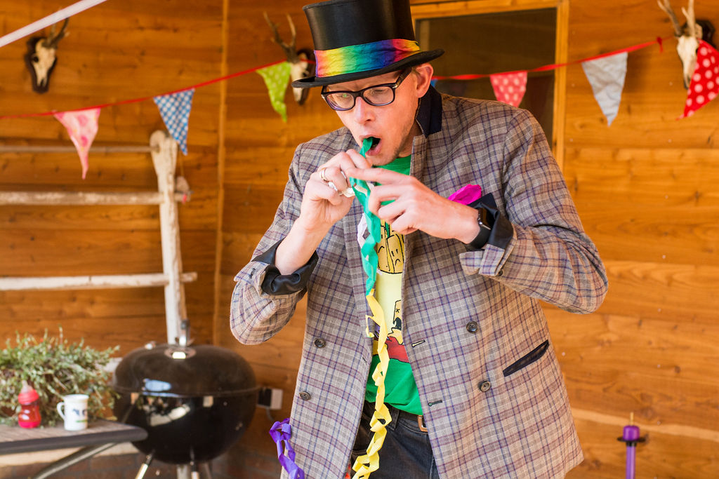 Lange Jan de Trucjesman is een professionele kindergoochelaar met meer dan 25 jaar ervaring en weet precies hoe hij een groep pedagogisch verantwoord begeleidt — ook wanneer kinderen onverwacht reageren.